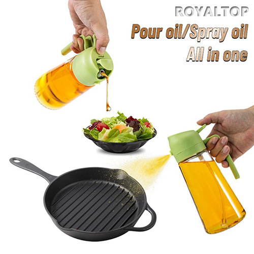 This is an Amazon best-selling kitchen cooking oil container with 2-in-1 integral design, which can spray an even mist of oil or pour oil quickly.Royaltop is a houseware and kitchenware manufacturer from China, providing one-stop product solutions for Amazon sellers, we have more than twenty years of manufacturing experience, providing high quality products and services for many customers. I will introduce this cooking oil bottle in detail for you.