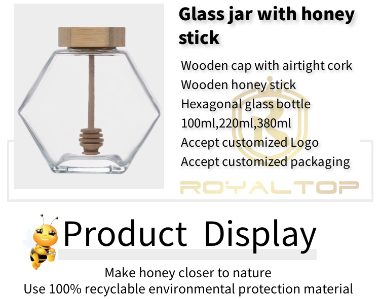 Perfect service: This transparent hexagonal glass honey jar has three capacities, 100ml, 220ml and 380ml. The hexagonal honey container makes it easier to take. We also provide a number of customization services, including logo, label and packaging. The samples are free of charge, and the freight of the samples will be returned after your official order. Contact us for more details.