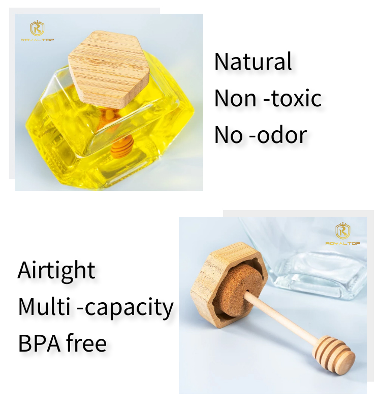 Easy to use: In order to make the use easier, we integrate the honey dipper stick and cork stopper into the wooden cover at the top. This will make it more convenient for you to add honey or syrup to tea and coffee, and more evenly spread the syrup or honey on cookies or bread, without polluting more containers and desks.