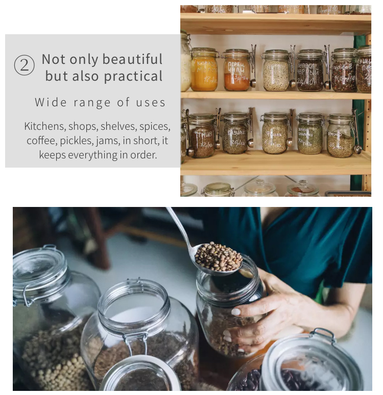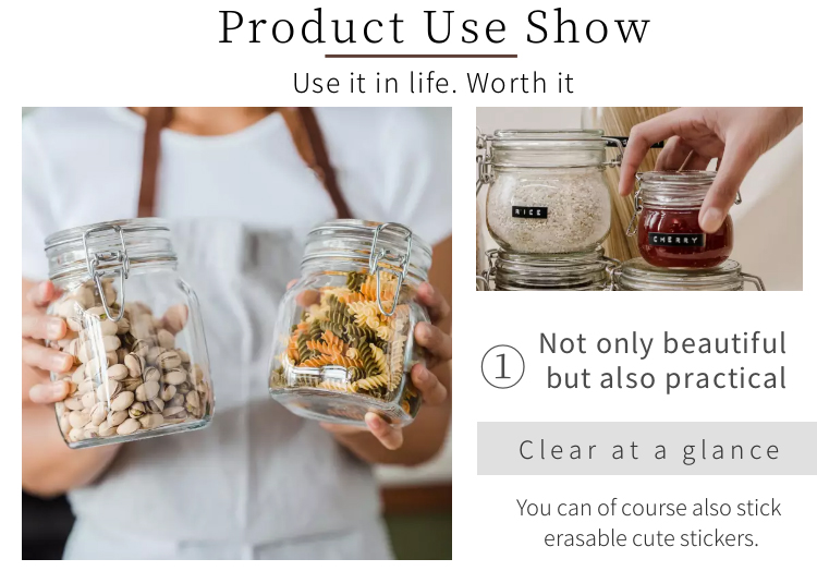4. Safe and convenient: The glass jar is made of high-quality food-grade glass, BPA-free, lead-free, environmentally friendly and non-toxic. After removing the rubber ring, it can be washed in the dishwasher.